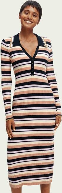 Scotch & Soda Ribgebreide midi jurk in wolblend met gestreept dessin
